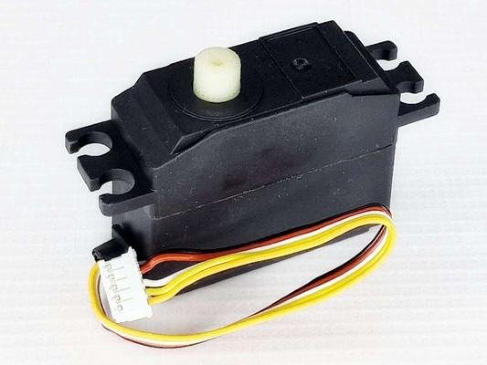 Аналоговая сервомашинка JX PS-2503HB с пластиковым редуктором для радиоуправляемых моделей Remo Hobby 1/16 масштаба. Вес: 25.32 г, усилие на валу: 2.85 кг/см (4.8V), 3.35 кг/см (6.0V), скорость: 0.12 с/60° (4.8V), скорость: 0.10 с/60° (6.0V).