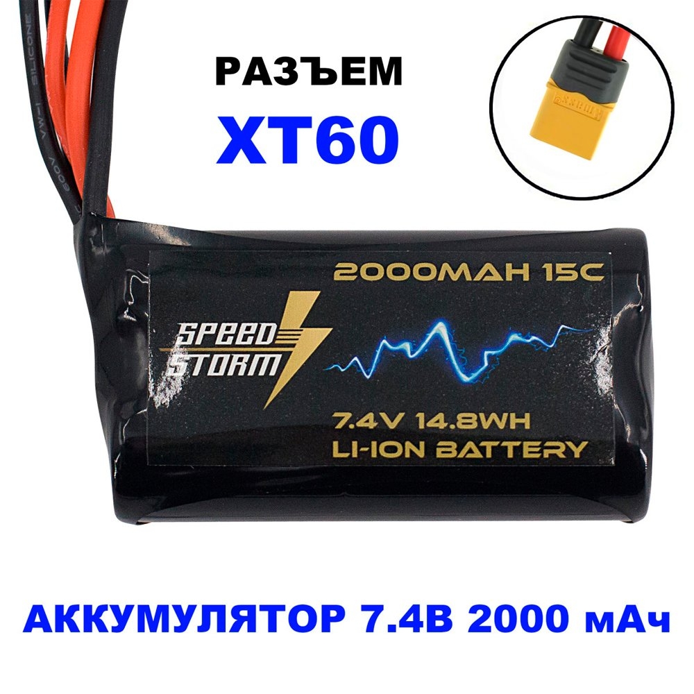 Аккумулятор Speed Storm Li-ion 18650 7.4V 2000 mAh разъем XT60 - SS-2S2000-XT60