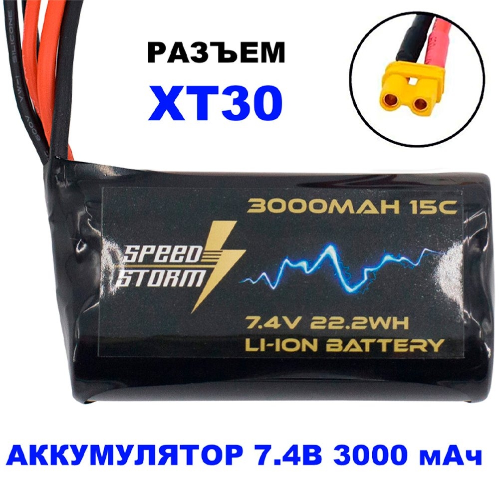 Аккумулятор Speed Storm Li-ion 18650 7.4V 3000 mAh разъем XT30 - SS-2S3000-XT30