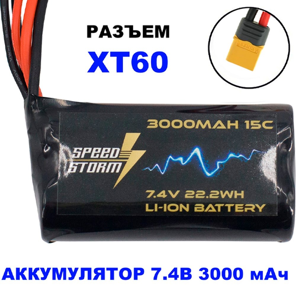 Аккумулятор Speed Storm Li-ion 18650 7.4V 3000 mAh разъем XT60 - SS-2S3000-XT60