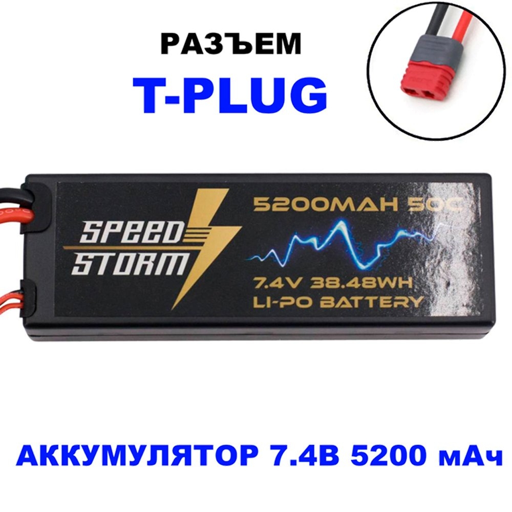 Аккумулятор Speed Storm Li-Po 7.4V 50C 5200 mAh Hard Case разъем T-plug (Deans) - SS-2S5200-50-D