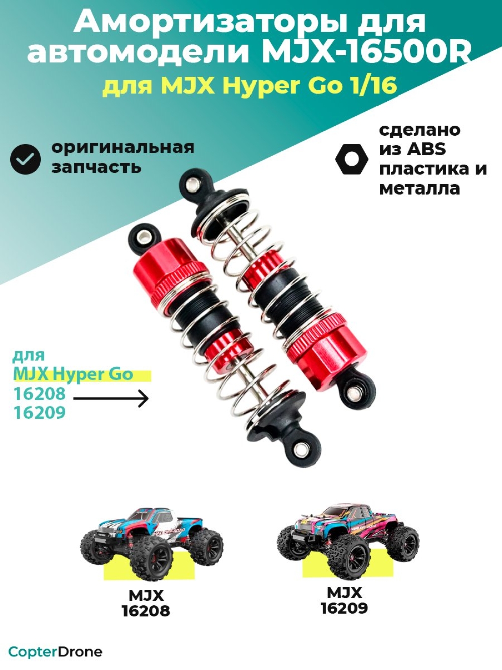 Амортизаторы масляные для автомоделей MJX 16208/16209, 2шт, пластиковые - MJX-16500R