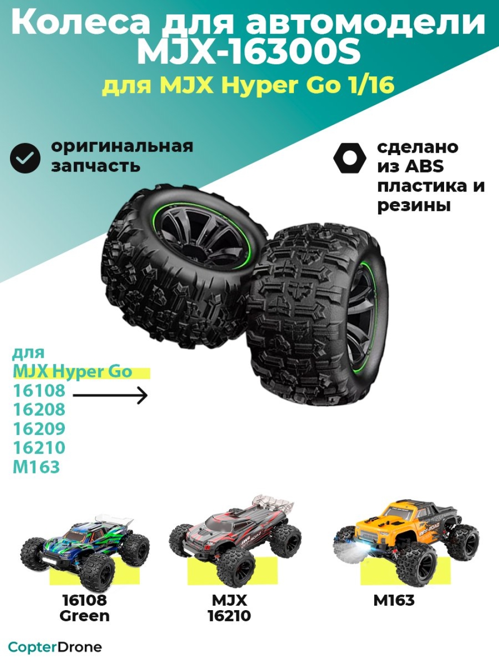 Колесо в сборе 16300S для автомодели MJX 16108, зеленое, 2 шт - MJX-16300S