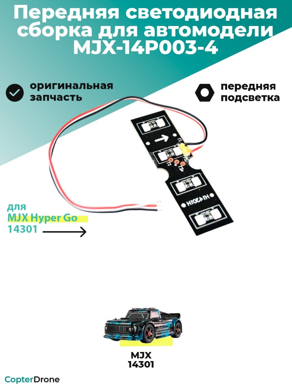 Передняя светодиодная сборка для радиоуправляемых автомоделей MJX Hyper Go 14301 масштаба 1/14.