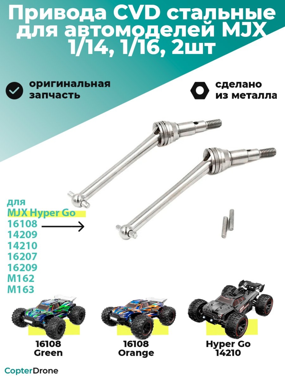 Привода CVD стальные для автомоделей MJX 1/14, 1/16, 2шт - MJX-16410