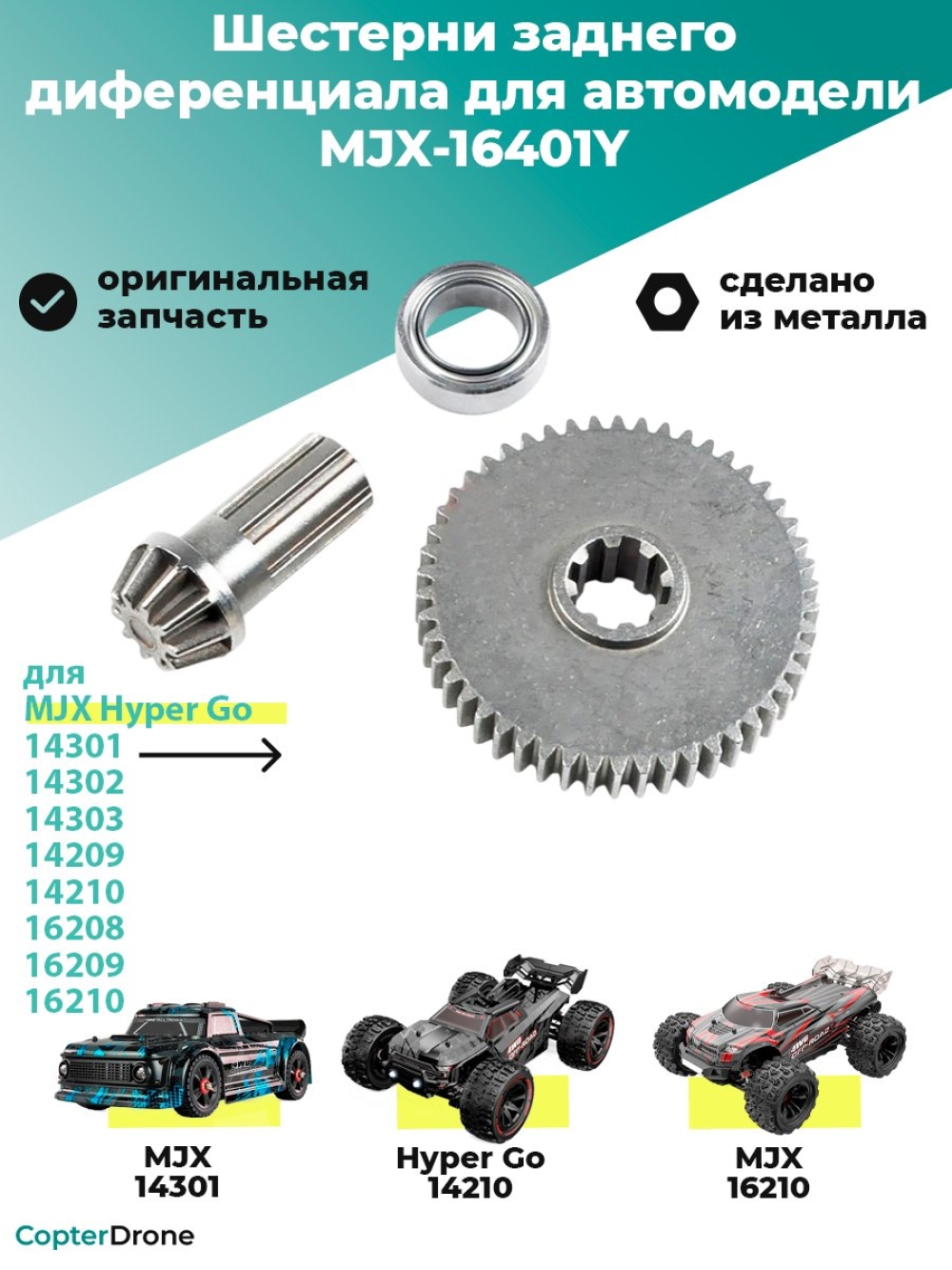 Ведомая + ведущая шестерни заднего дифференциала для автомоделей MJX 14301/14302/14303, металл - MJX-16401Y