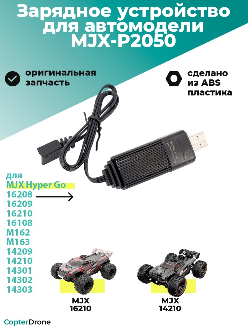 Зарядное устройство USB 7.4V 1.5A для автомоделей MJX 1/14, 1/16 - MJX-P2050