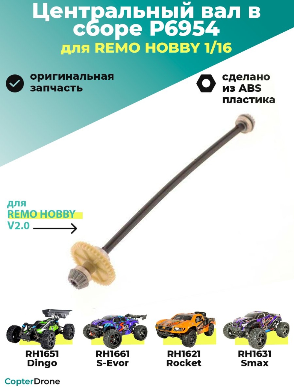 Центральный вал в сборе с главной шестерней и шестернями дифференциала для автомоделей Remo Hobby масштаба 1/16