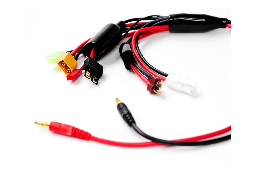 Кабель для зарядного устройства IMAX B6AC (50W) с разъемом Banana с одной стороны и разъемами TRX/Tamiya/JST/T-plug/Mini Tamiya/XT60 с другой.
