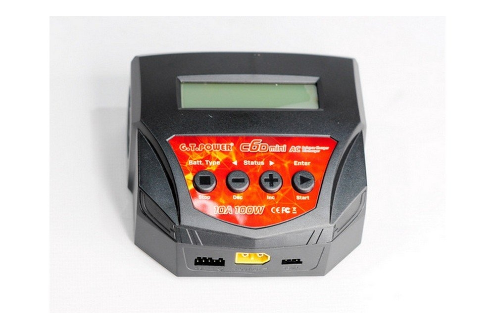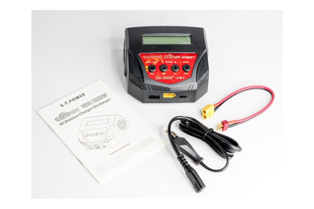 Универсальное зарядное устройство G.T.Power C6D Mini 60W с максимальным током заряда 6А. Работает от сети переменного тока AC 100-240В.