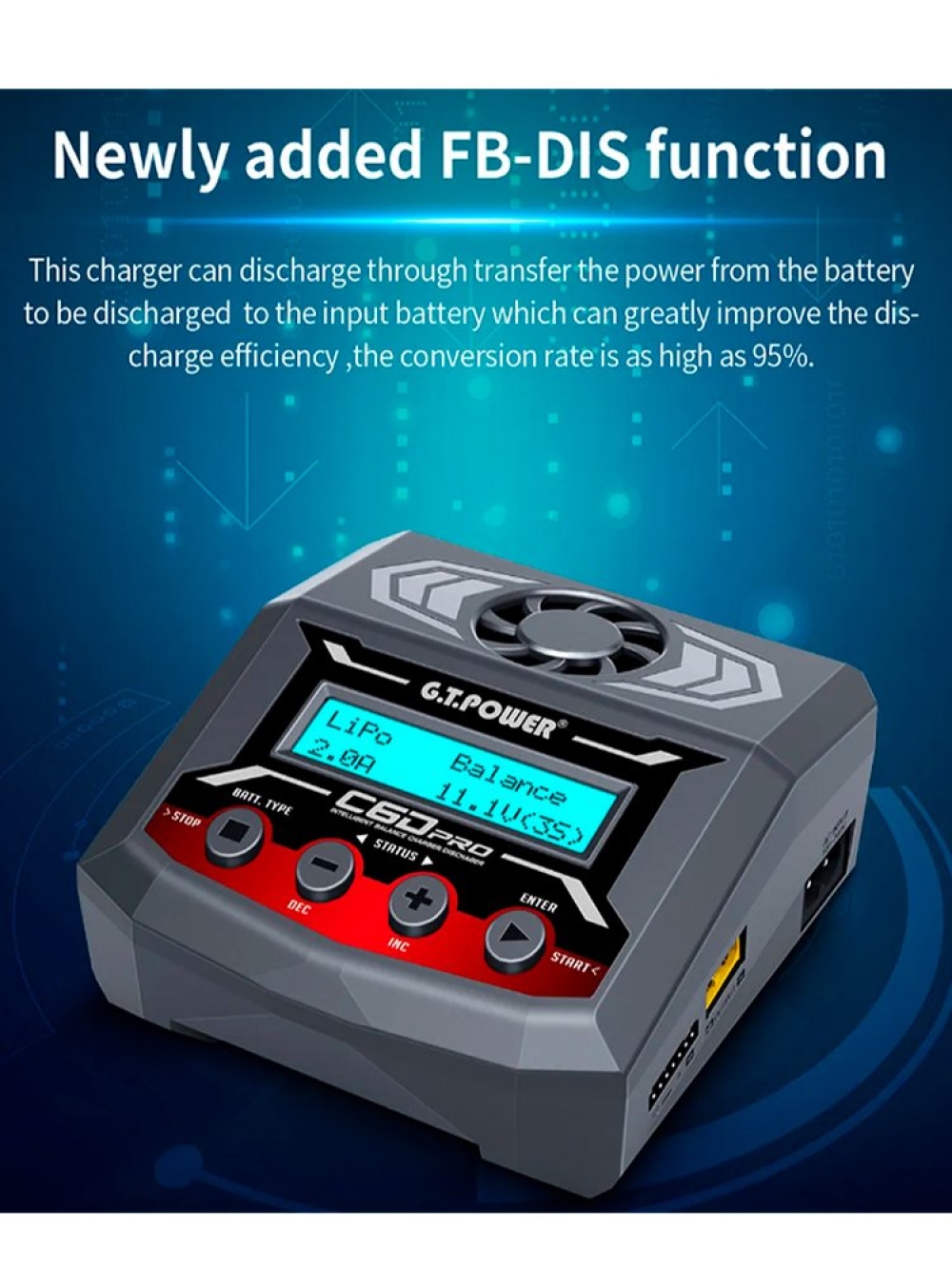 Универсальное зарядное устройство G.T.Power C6PRO Dual Power, способное одновременно заряжать два разных типа батарей.