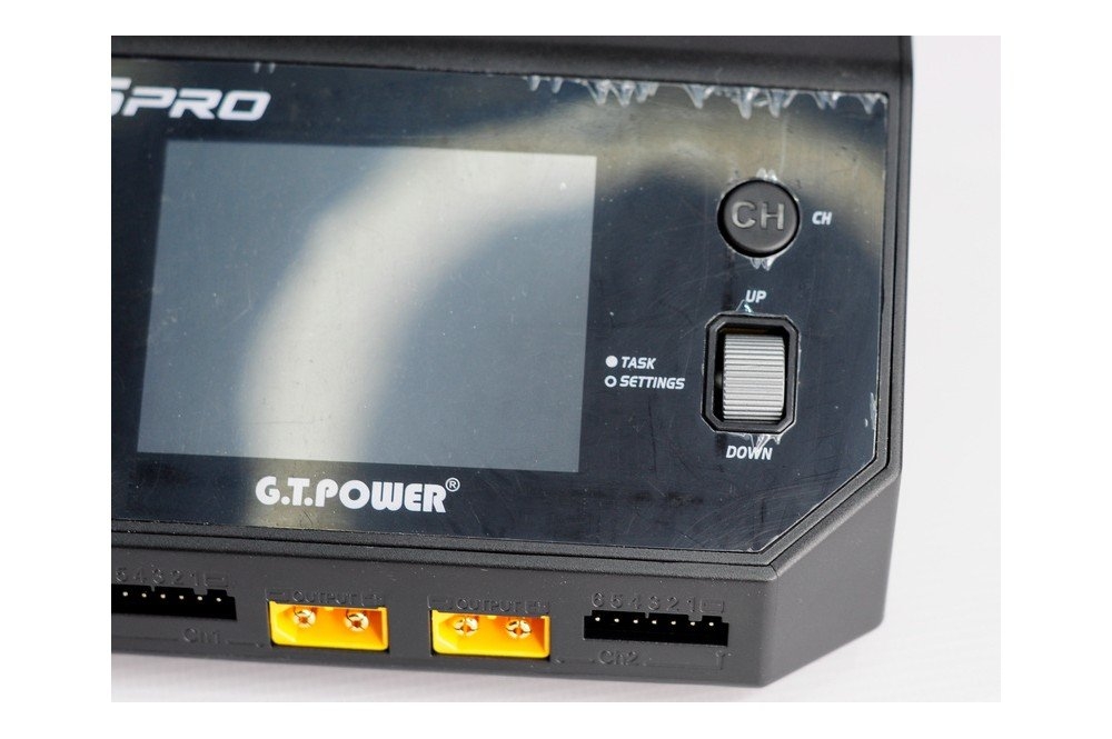 Универсальное зарядное устройство G.T.Power PRO Dual Power, способное одновременно заряжать два разных типа батарей.
