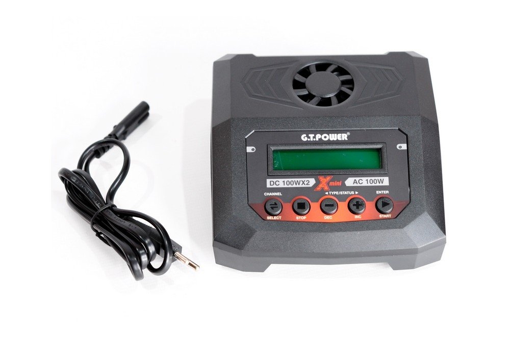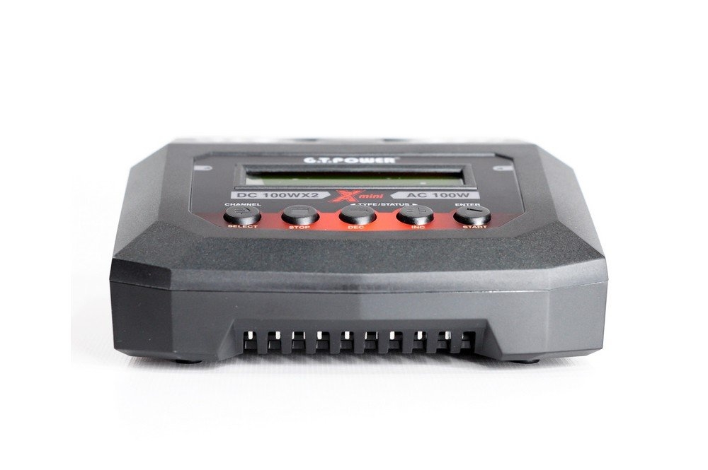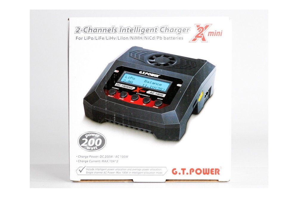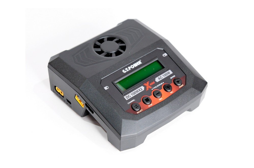 Универсальное зарядное устройство G.T.Power X2MINI Dual Power, способное одновременно заряжать два разных типа батарей.
